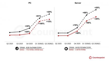Цены на компьютерную память вырастут на 90 % и даже выше по итогам первого квартала 2026 года по сравнению с последней четвертью 2025 года, что является беспрецедентным и рекордным скачком, говорится в свежем отчёте аналитической компании Counterpoint Research. Это уже не первые аналитики, предрекающие памяти почти двукратное подорожание в текущий трёхмесячный период.